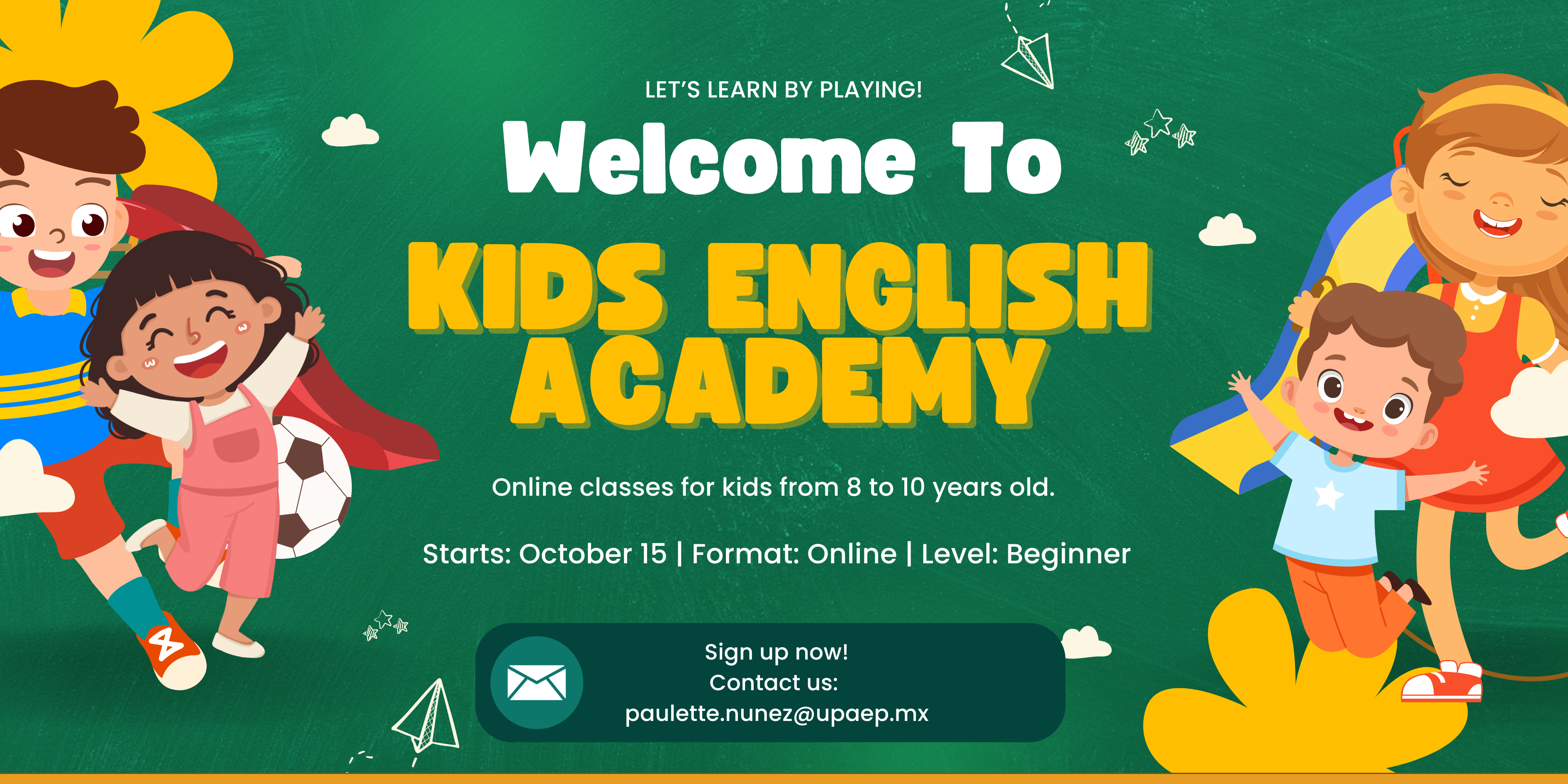 Curso de modalidad completamente online dirigido a niños de 8 a 10 años que recién tienen su primer contacto con una segunda lengua (Inglés).